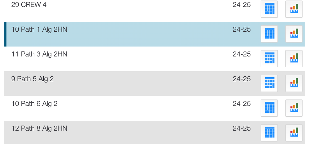 I don't have a path 2, but my Path 3 is that Algebra 2 Honors way at the bottom of my list. With the courses way out of order like this, it is difficult to click on the correct class to take attendance.