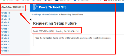In Powerschool Scheduler, Request Screen Setup is always for 2022-2023.