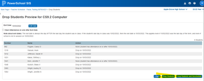 * Drop from this class: This option will drop the selected students from this section and/or drop them and enroll into another section